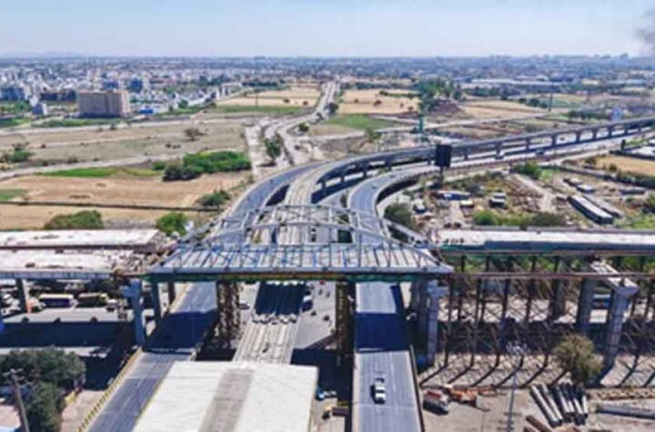 इंदौर में डबल डेकर फ्लाईओवर निर्माण ने पकड़ी रफ्तार, 400 टन ‘बो स्ट्रिंग’ हवा में असेंबल