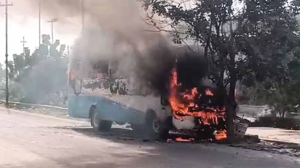 इस दौरान बस सड़क किनारे एक पेड़ से जा टकराई। चंद मिनटों में आग ने पूरे बस को अपने आगोश में ले लिया। सीएफओ प्रदीप कुमार ने बताया कि निजी बस एक फैक्ट्री में लगी है। जो नोएडा की तरफ जा रही थी। शार्ट सर्किट से आग लगने की आशंका है। दमकल की दो गाड़ियों ने मौके पर पहुंचकर आग पर काबू पाया। बस में सवार तीनों लोग सुरक्षित है।