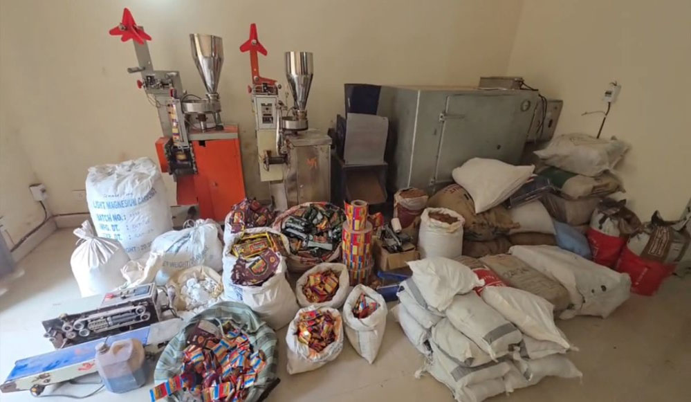 एमपी के इंदौर में नकली पान मसाला बनाने वाले एक कारखाने पर कार्रवाई की गई है। पुलिस ने मौके से भारी मात्रा में मसाला बनाने का सामान जब्त किया है। कई तरह की इलेक्ट्रॉनिक मशीन भी बरामद की गई है। मुंबई के रहने वाले कारोबारी को भी पकड़ा गया है। पुलिस ने मामले में तीन लोगों को आरोपी बनाया है। बताया जा रहा है कि यह सभी घर पर ब्रांडेड कंपनी के पान मसाले बना रहे थे।