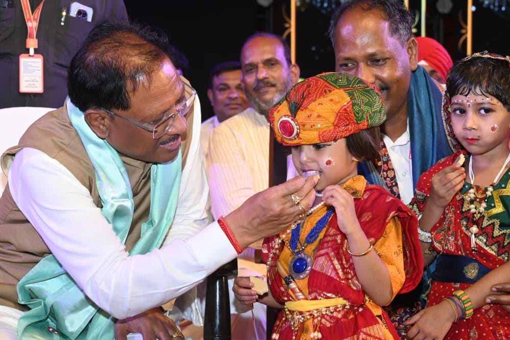 इस अवसर पर मुख्यमंत्री साय ने प्रतीकात्मक रूप से दही-हांडी तोड़कर उत्सव की परंपरा निभाई तथा राधा-कृष्ण के रूप में सजे नन्हे-मुन्ने बच्चों को मिठाई खिलाकर स्नेह प्रदान किया।