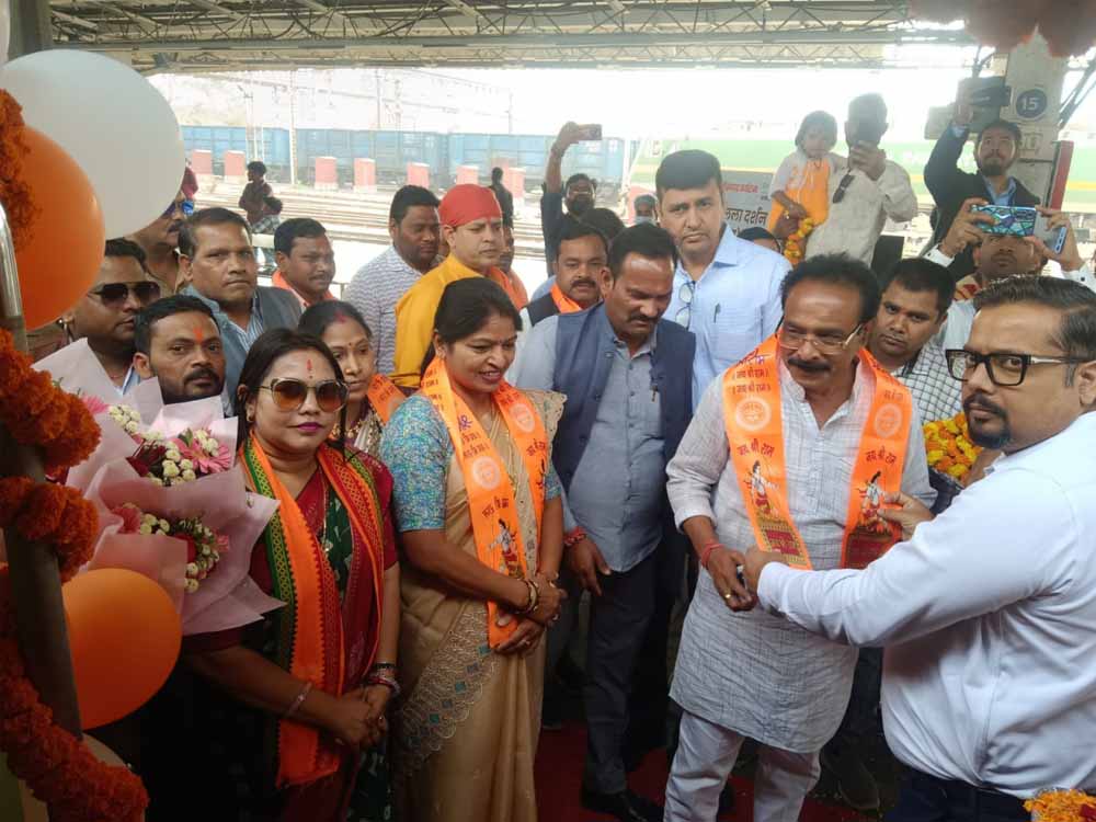 बिलासपुर रेलवे स्टेशन पर सुबह से ही भक्तिमय वातावरण छाया रहा। ‘जय राम‘ के उद्घोषों से स्टेशन गूंज रहा था। श्रद्धालुओं भजन-कीर्तन गा रहे थे। स्टेशन परिसर को फूलों, रंगोली और भगवा ध्वजों से सजाया गया था। छत्तीसगढ़ टूरिज्म बोर्ड और आईआरसीटीसी के कर्मचारियों ने यात्रियों का स्वागत चाय, नाश्ता और स्मृतिचिन्ह प्रदान कर किया। जिला पंचायत अध्यक्ष राजेश सूर्यवंशी, मुंगेली जिला पंचायत अध्यक्ष कांत पांडे, सभापति मती अंबालिका साहू सहित जिला प्रशासन के अधिकारी इस अवसर पर उपस्थित रहे।