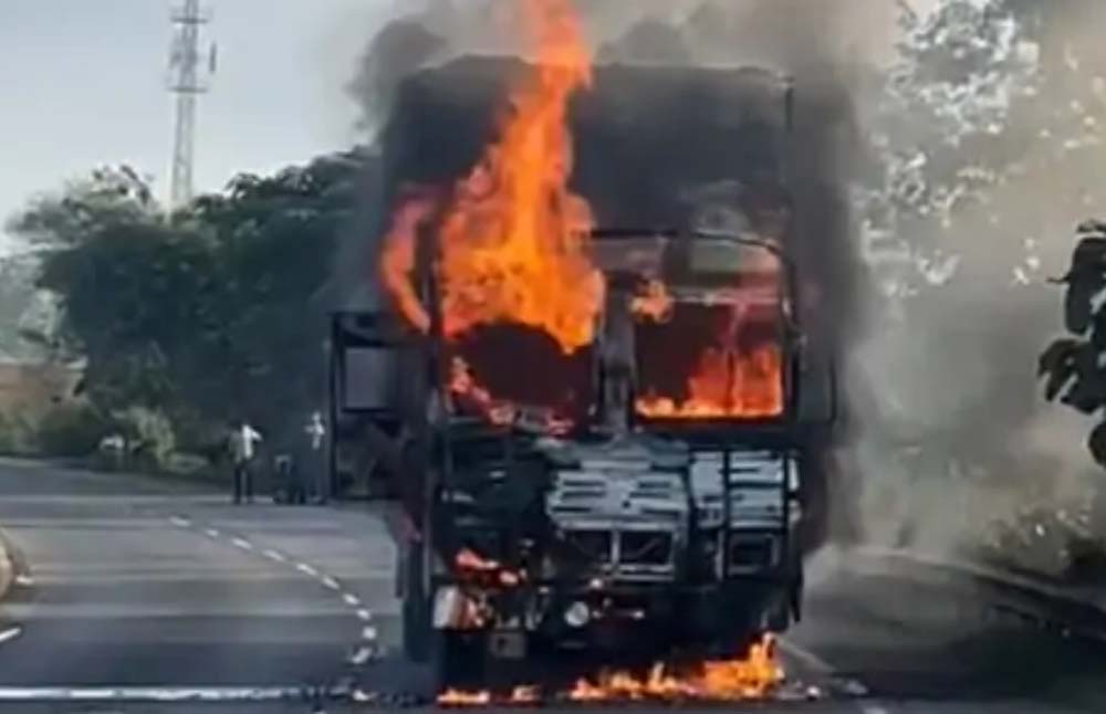 नागपुर-जबलपुर राष्ट्रीय राजमार्ग 44 पर कुरई घाटी के पास चलते ट्रक में अचानक आग लग गई। इससे पहले ट्रक के ड्राइवर और हेल्पर कुछ समझ पाते आग तेजी से फैल गई। किसी तरह ड्राइवर और हेल्पर ने ट्रक को सड़क किनारे खड़ा किया और उससे कूदकर अपनी जान बचाई।