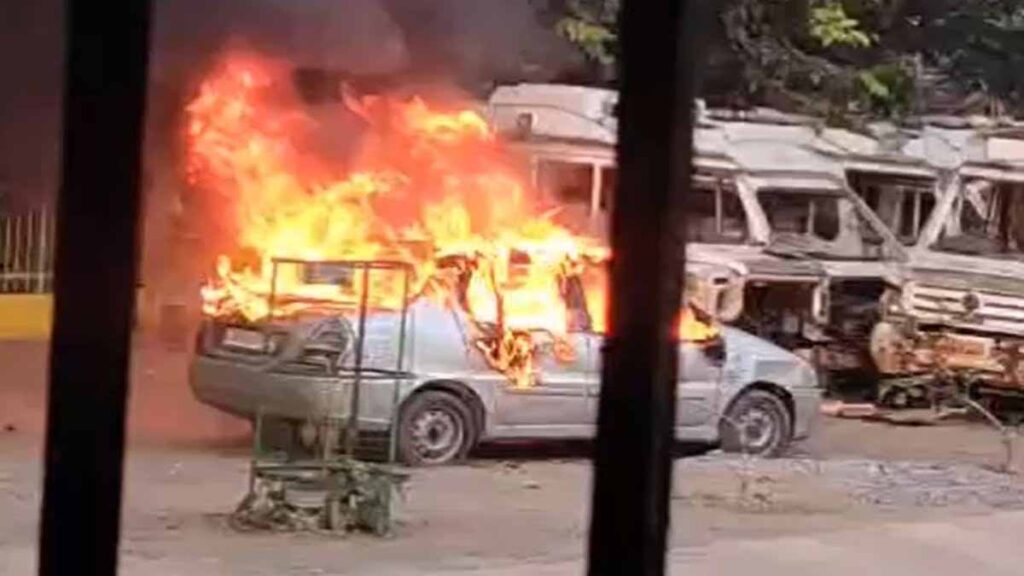 सामुदायिक स्वास्थ्य केंद्र में खड़ी गाड़ी में अचानक लगी आग