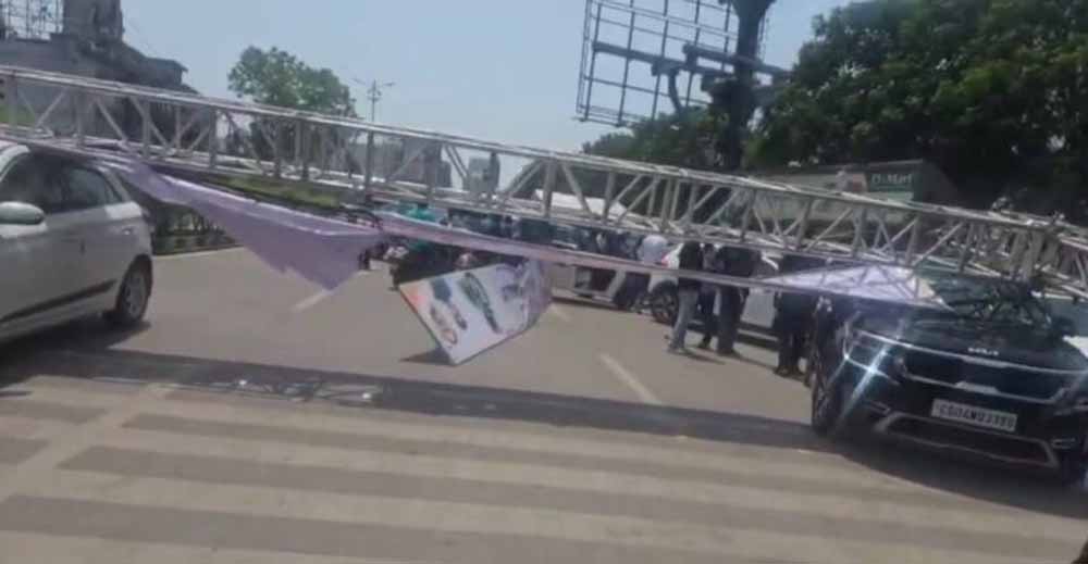 बता दें कि विश्न साइकिल दिवस पर मरीन ड्राइव चौक पर जर्मन का एंगल गेट लगाया गया था. आयोजन की समाप्ति पर ट्रस का सेटअप निकालते वक्त एंगल गिर गया, जिसकी चपेट में आने से एक मजदूर घायल हो गया, वहीं सिग्नल पर खड़े कार का सनरूफ एंगल गिरने की वजह से टूट गया. मौके पर तेलीबांधा थाना पुलिस मौजूद है.