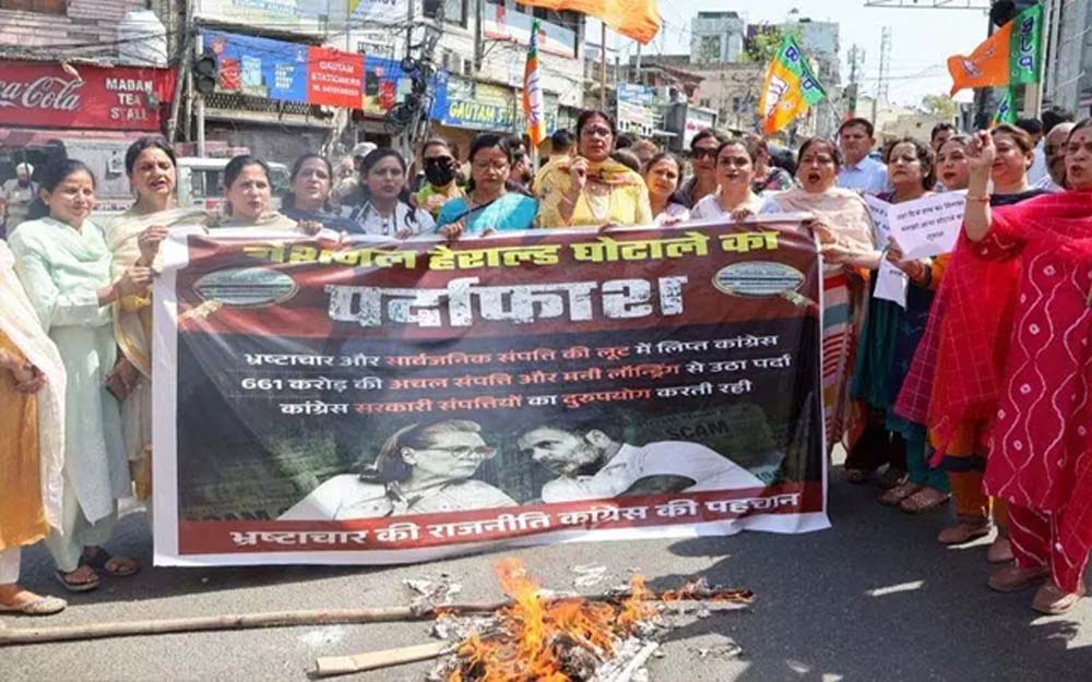 नेशनल हेराल्ड मामले में कांग्रेस पर ‘जनता के पैसे के गबन’ का आरोप, बीजेपी ने जोरदार विरोध प्रदर्शन किया