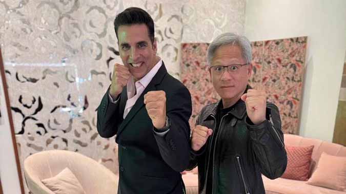 फोटो में अक्षय कुमार एनवीडिया के सीईओ जेन्सेन हुआंग के साथ मार्शल आर्ट पोज में तस्वीर खिंचवाते नजर आ रहे हैं। फोटो में दोनों हंसते नजर आ रहे हैं।