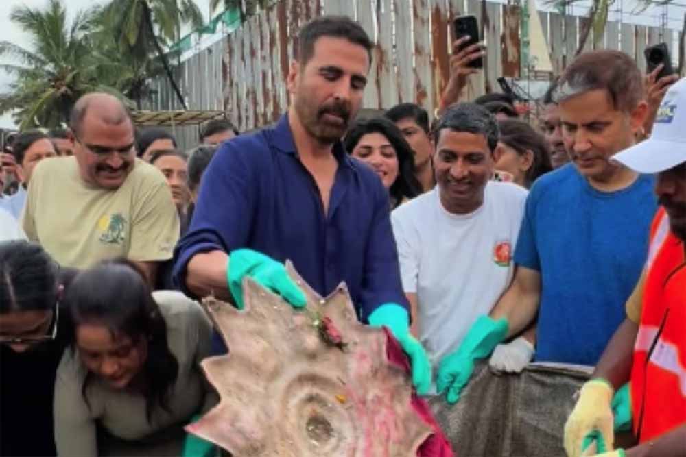 बॉलीवुड अभिनेता अक्षय कुमार को रविवार को मुंबई के जुहू बीच पर देखा गया। यहां वे एक सफाई अभियान में शामिल होने पहुंचे थे। इस दौरान उन्होंने समुद्र तट की सफाई की और लोगों को खास संदेश भी दिया। दरअसल, मुंबई के जुहू बीच पर गणपति विसर्जन के बाद कूड़ा-कचरा फैल जाता है। इसी कारण उसकी सफाई के लिए अभिनेता अक्षय कुमार भी पहुंचे। सफाई अभियान के दौरान उन्होंने लोगों को स्वच्छता के प्रति जागरूक भी किया।