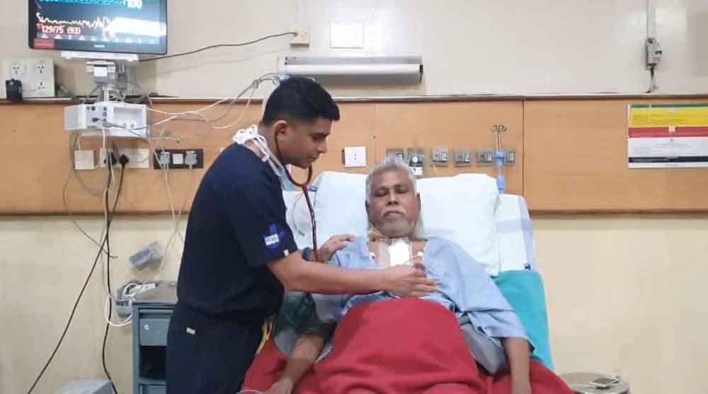 ऑपरेशन करने वाले हार्ट सर्जन डॉ. कृष्णकांत साहू बताते हैं कि दुर्ग जिले के रहने वाले इस 72 वर्षीय मरीज जो कि रिटायर्ड शासकीय कर्मचारी है, को आज से डेढ़ महीने पहले छाती में तेज दर्द हुआ था, जिसके कारण उनको स्थानीय अस्पताल में भर्ती कराया गया था। मरीज की ईसीजी देखकर हार्ट अटैक का पता चल गया था। उसके बाद मरीज की एंजियोग्राफी की गई, जिससे पता चला कि मरीज के हृदय की मुख्य नस (लेफ्ट मेन कोरोनरी आर्टरी) में 65 प्रतिशत ब्लॉकेज एवं साथ ही साथ अन्य तीनों नसों में 90 से 95 प्रतिशत ब्लॉकेज था। हार्ट की नसों में ब्लॉकेज इतना ज्यादा था कि वहां के डॉक्टरों ने एंजियोप्लास्टी करने से मना कर दिया एवं वहां से कोरोनरी बाईपास सर्जरी के लिए बड़े संस्थान में रेफर कर दिया। इकोकार्डियोग्राफी करने से पता चला कि हार्ट बहुत ही ज्यादा कमजोर हो गया था। मात्र 35 से 40 प्रतिशत ही कार्य कर रहा था। इसको मेडिकल भाषा में लेफ्ट मेन (65 प्रतिशत) विद ट्रिपल कोरोनरी आर्टरी डिजीज विद सीवियर लेफ्ट वेंट्रिकुलर डिस्फंक्शन कहा जाता है। चूंकि इस मरीज के रिश्तेदार एवं स्वयं मरीज ने अंबेडकर अस्पताल के हार्ट सर्जरी विभाग की कई सफल सर्जरी के बारे में काफी सुना था, इसलिए उन्होंने अन्य संस्थान न जाकर अंबेडकर अस्पताल के हार्ट सर्जरी विभाग को चुना।