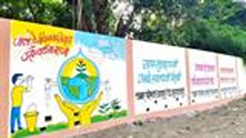दीवारों पर पेंटिंग बना कर जल संरक्षण का संदेश