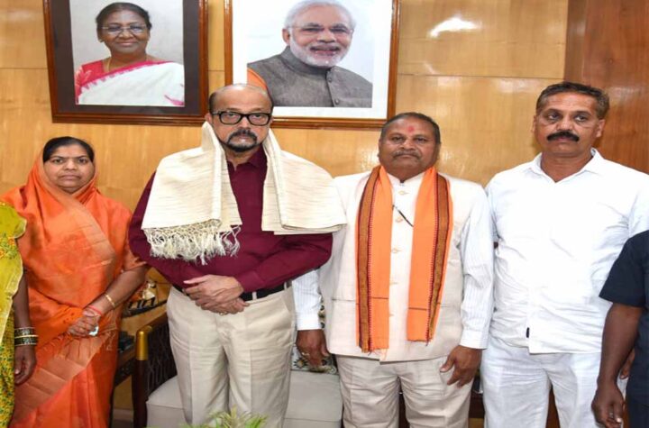 रायपुर. राज्यपाल रमेन डेका से राष्ट्रपति पुरस्कार प्राप्त ढोकरा शिल्प कलाकारों ने की सौजन्य भेंट सारंगढ़ जिले के जनजातीय बाहुल्य...