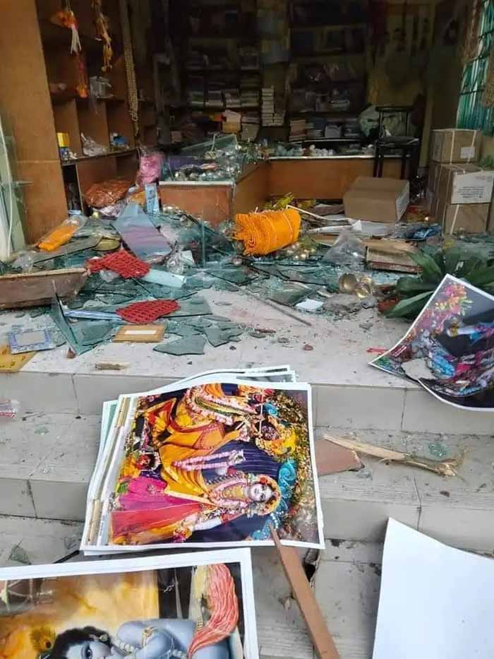 बांग्लादेश में दुर्गा पूजा से पहले अल्पसंख्यक हिंदू समुदाय के खिलाफ हमले बढ़ते जा रहे हैं। जमालपुर जिले के सरिशाबारी उपजिला के तऱ्यापारा मंदिर में शनिवार रात एक शख्स ने लूट के बाद सात मूर्तियों को तोड़फोड़ दिया। यह घटना दुर्गा पूजा से ठीक पहले दूसरी बार सामने आई है।पुलिस ने आरोपी हबीबुर रहमान (35) को गिरफ्तार किया है। सरिशाबारी पुलिस थाना के अधिकारी राशेदुल हसन ने बताया कि पुलिस को सूचना मिलने पर तुरंत घटनास्थल पर भेजा गया।