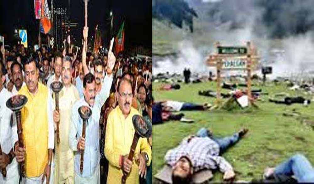 मशाल जुलूस निकाल कर जताया विरोध- वहीं पहलगाम आतंकी हमले के विरोध में गुरुवार शाम भाजपा ने न्यू मार्केट इलाके में मशाल जुलूस निकाला। भाजपा प्रदेश अध्यक्ष वीडी शर्मा की अगुवाई में निकले मशाल जुलूस में भाजपा नेताओं के साथ बड़ी संख्या में लोगों ने न्यू मार्केट के नानके पेट्रोल पंप से रोशनपुरा चौराहे तक पैदल मार्च किया औऱ रोशनपुरा चौराहे पर पहुंचकर आतंकवादी घटना का विरोध जताया और दो मिनट का मौन रखकर मृतकों को श्रद्धांजलि अर्पित की।