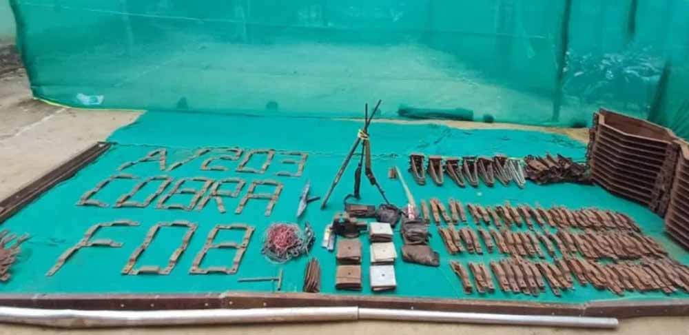 बरामदगी के दौरान जवानों को नक्सलियों के डंप से भारी मात्रा में हथियार और विस्फोटक सामग्री मिली है. इसमें कंट्रीमेड रायफल, बीजीएल लांचर और उसका बैरल, यूएवी नेत्रा का टूटा हुआ प्रोपेलर, इलेक्ट्रिक होल्डर वेल्डिंग, बैंच वाइस और स्टील पाइप शामिल है. इसके अलावा 7 लोहे के छड़, करीब 2 किलो वजनी 45 लोहे के बेस प्लेट, 8 किलो के 47 पोल एंगलर और लगभग 480 भारी-भरकम आयरन क्लैंप बरामद किए गए. वहीं 35 ग्राउंड सपोर्टर, 1 किलो, 18 और 12 इंच के दर्जनों क्लैंप, एक टी-टाइप क्लैंप, काला वर्दी, एम्युनेशन पाउच और टूटी हुई इन्वर्टर बैटरी भी मिली. मौके से करीब 20 मीटर इलेक्ट्रिक वायर और एक इलेक्ट्रिकल एक्सटेंशन बोर्ड भी जब्त किया गया.