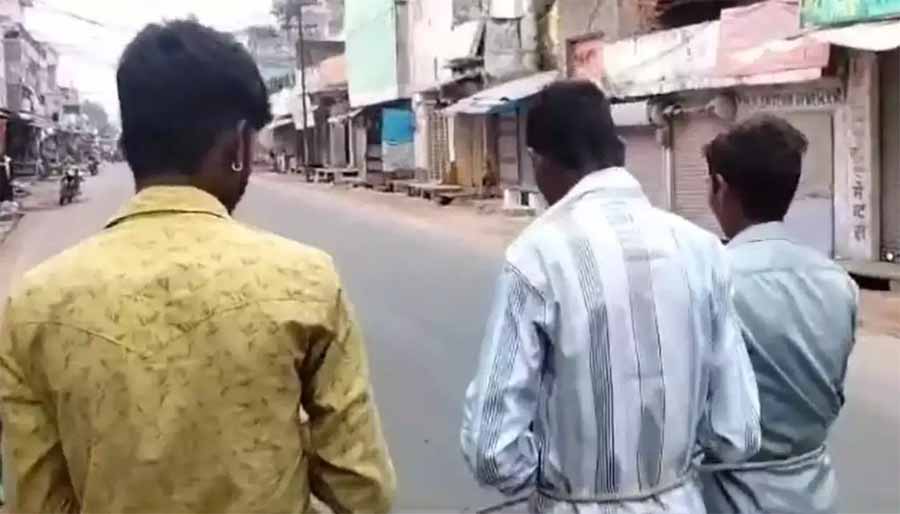 छतरपुर जिले के हरपालपुर थाना क्षेत्र अंतर्गत पुरानी गल्ला मंडी में भीड़ का तालिबानी चेहरा सामने आया है। जहां चोरी के आरोप में पकड़े गए तीन नाबालिगों के साथ भीड़ द्वारा अमानवीय कृत्य किया गया है। भीड़ द्वारा नाबालिगों को रस्सी से बांधकर जुलूस निकालते हुए थाने ले गए।