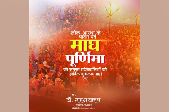 भोपाल : मुख्यमंत्री डॉ. मोहन यादव ने लोक आस्था के पर्व माघ पूर्णिमा की सभी श्रद्धालुओं को बधाई और शुभकामनाएं...