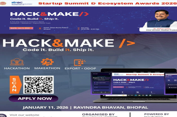हैक & मेक 2026 नवाचार और स्टार्टअप संस्कृति को नई ऊँचाइयों तक ले जाने की दिशा में ऐतिहासिक पहल भोपाल...