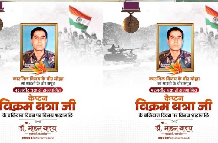 भोपाल मुख्यमंत्री डॉ. मोहन यादव ने परमवीर चक्र से सम्मानित कैप्टन विक्रम बत्रा जी के बलिदान दिवस पर सादर श्रद्धांजलि...