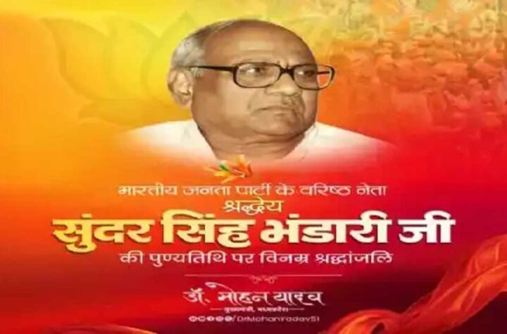 भोपाल मुख्यमंत्री डॉ. मोहन यादव ने भारतीय जनता पार्टी के वरिष्ठ नेता, श्रद्धेय सुंदर सिंह जी भंडारी की पुण्यतिथि पर...