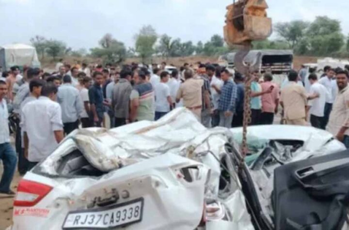 नागौर डीडवाना-कुचामन जिले के मौलासर बाईपास के पास शुक्रवार को एक निजी सवारी बस ब्रेजा कार के ऊपर पलट गई।...