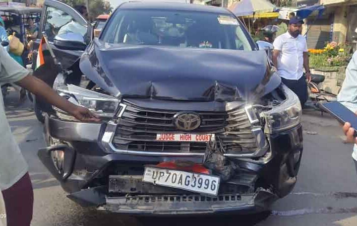 देवरिया उच्च न्यायालय इलाहाबाद के न्यायमूर्ति राजीव कुमार सिंह की कार शनिवार देवरिया में सिविल लाइंस रोड पर पुलिस स्कॉट...