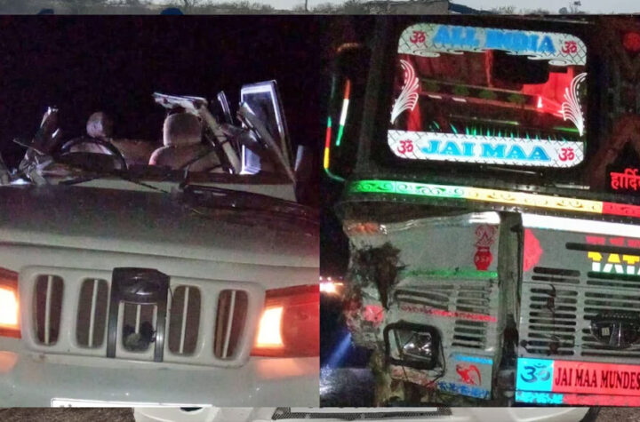 चंदौली नौगढ़-मधुपुर मुख्य मार्ग पर गुरुवार की देर रात बोलेरो और ट्रक की जोरदार टक्कर में बोलेरो के परखच्चे उड़...