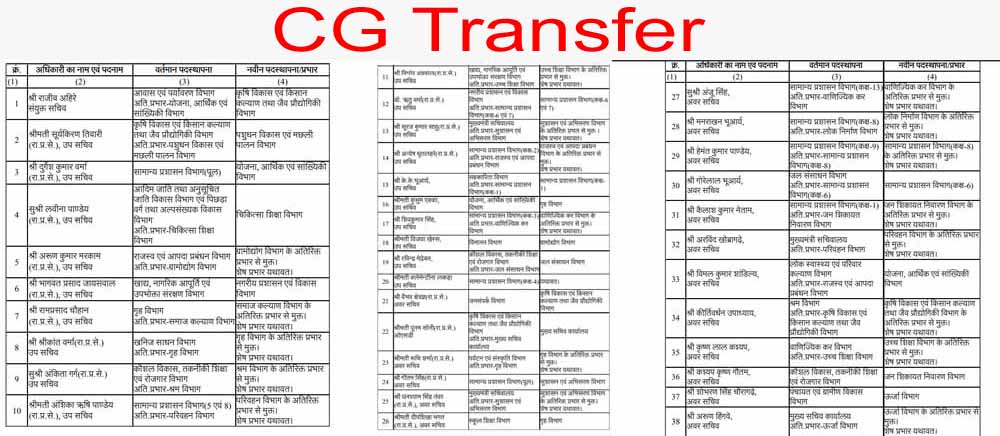 यह आदेश छत्तीसगढ़ शासन के सामान्य प्रशासन विभाग (General Administration Department) द्वारा जारी किया गया है और इसमें राज्य प्रशासनिक सेवा (State Administrative Service) एवं सचिवालय सेवा (Secretariat Service) के अधिकारियों का बड़े पैमाने पर तबादला किया गया है।