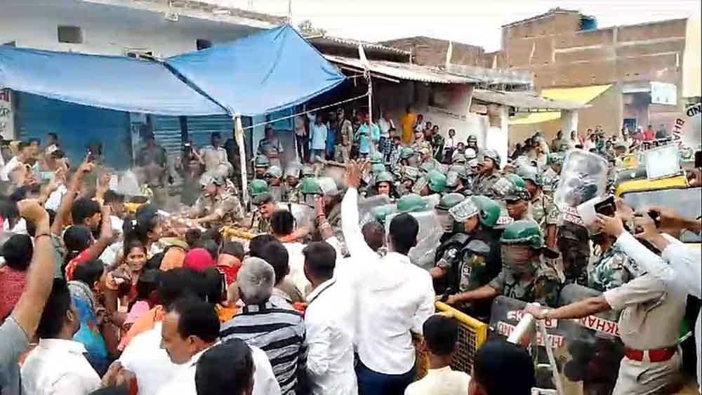 बलरामपुर रामानुजगंज छत्तीसगढ़ सीमा से महज कुछ किलोमीटर दूरी पर स्थित झारखंड के गढ़वा जिला अंतर्गत मदगड़ी गांव में दुर्गा मूर्ति विसर्जन के रास्ते को लेकर हुए विवाद आज देखते देखते हिंसक झड़प के रूप में तब्दील हो गया पुलिस एवं ग्रामीणों के बीच बवाल में एक ग्रामीण की  दोनों पैर टूट गई वहीं दूसरे ग्रामीण के पैर में गोली लगी दोनों घायलों को रामानुजगंज के निजी चिकित्सालय मिलाया लाया गया जहां दोनों घायलों का इलाज चल रहा है।