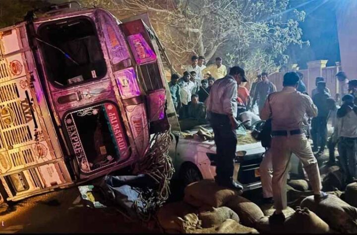 रायपुर में दर्दनाक हादसा: कार पर पलटा धान से भरा ट्रक, 1 की मौत, 4 की हालत गंभीर