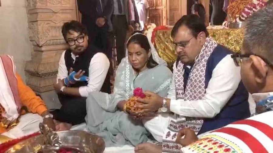 इसके बाद सीएम शर्मा त्रिपुरा सुंदरी मंदिर पहुंचे, जहां उन्होंने पंडित निकुंज मोहन पण्ड्या और दिव्यभारत पंड्या के निर्देशन में विधि-विधान से सपत्नीक पूजा-अर्चना की। मंदिर ट्रस्ट की ओर से भी सीएम का स्वागत किया गया। इसके बाद मुख्यमंत्री डूंगरपुर के खेरमाल के लिए प्रस्थान कर गए।