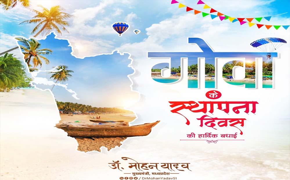 मुख्यमंत्री डॉ. मोहन यादव ने गोवा राज्य के स्थापना दिवस की गोवा के मुख्यमंत्री डॉ. प्रमोद पी. सांवत और नागरिकों को हार्दिक बधाई व शुभकामनाएं दीं हैं। उन्होंने कहा कि प्राकृतिक सौंदर्य, सांस्कृतिक विरासत, परंपरा और विकास के नए प्रतिमान की धरा गोवा, सदैव प्रगतिपथ पर गतिमान रहे और नागरिकों के जीवन में सुख-समृद्धि, प्रसन्नता की बढ़ोतरी हो, ईश्वर से यही प्रार्थना है।