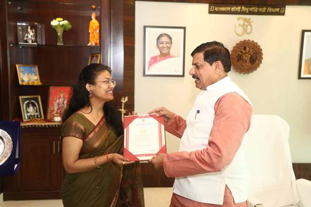 मुख्यमंत्री डॉ. मोहन यादव ने नवाचार के लिए मुख्यमंत्री उत्कृष्टता पुरस्कार 2022-23 से उप सचिव सहकारिता सुश्री शीला दाहिमा को मंत्रालय में प्रशस्ति पत्र प्रदान कर सम्मानित किया। सुश्री दाहिमा को माध्यमिक शिक्षा मंण्डल की अतिरिक्त सचिव रहते हुए किए गए नवाचार के लिए यह सम्मान प्राप्त हुआ। मण्डल में पदस्थापना के दौरान सुश्री शीला दाहिमा ने प्रेरणादायी वीडियो के माध्यम से परीक्षा की तैयारी के लिए मोटिवेशनल वीडियो बनाकर यूट्यूब और माध्यमिक शिक्षा मण्डल की वेबसाइट पर अपलोड किए, जिससे छात्रों को परीक्षा की तैयारी करने में काफी मदद मिली। सुश्री दाहिमा के 21 अप्रैल को भोपाल से बाहर होने के कारण उन्हें आज प्रशस्ति पत्र भेंट कर सम्मानित किया गया।