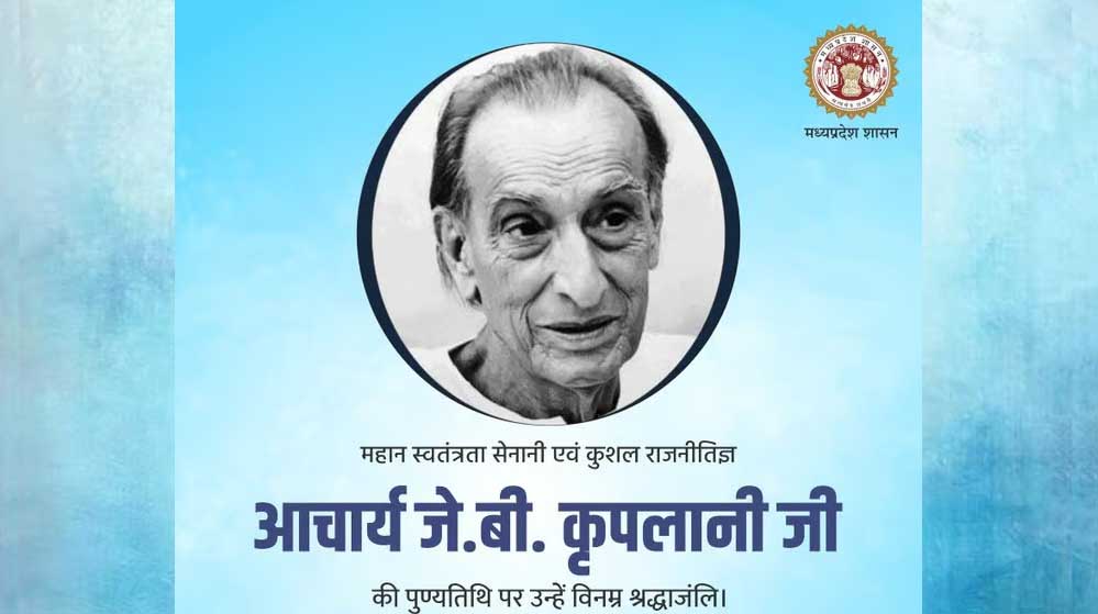 मुख्यमंत्री डॉ. मोहन यादव ने स्वतंत्रता सेनानी, खादी व ग्रामोद्योग से समृद्धि का मार्ग प्रशस्त करने वाले आचार्य जे. बी. कृपलानी की जयंती पर सादर नमन किया है। मुख्यमंत्री डॉ. यादव ने कहा कि निःस्वार्थ भाव से माँ भारती की सेवा में समर्पित आचार्य कृपलानी का अनुशासित, आदर्श एवं अनुशासित जीवन देशवासियों के लिए अनुकरणीय है।