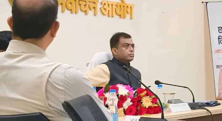 राज्य निर्वाचन आयुक्त श्री अजय सिंह की अध्यक्षता में आज राज्य निर्वाचन आयोग अटल नगर नवा रायपुर कार्यालय के सभा कक्ष में नगरपालिकाओं एवं त्रिस्तरीय पंचायतों के आगामी आम/उप निर्वाचन अंतर्गत निर्वाचन कार्यों की तैयारियों के संबंध में समीक्षा बैठक आयोजित की गई। बैठक में रायपुर संभाग के संभागायुक्त, पुलिस महानिरीक्षक, संभाग के सभी कलेक्टर एवं पुलिस अधीक्षक तथा उप जिला निर्वाचन अधिकारी शामिल हुए। बैठक में मुख्य रूप से चुनाव के सुचारू रूप से संचालन हेतु चुनाव की तैयारी, सुरक्षा व्यवस्था, मतदान केन्द्रों की स्थिति और निर्वाचन प्रक्रिया से जुड़ी महत्वपूर्ण तैयारियों की समीक्षा की गई। इस बैठक के माध्यम से चुनाव के सुचारू और सुरक्षित संचालन को सुनिश्चित करने के लिए आवश्यक निर्देश दिए गए।