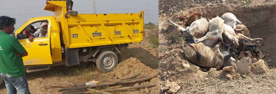 मृत मवेशियों को भस्मक भट्ठी (इंसीनरेटर) में न जलाकर फेक रहे खुले मैदान में