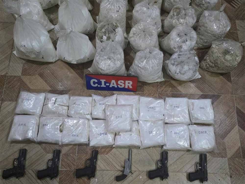 पुलिस ने बताया कि विदेश में रह रहे मादक पदार्थ तस्कर के दो सहयोगियों को गिरफ्तार किया गया है। उनके पास से पांच विदेशी पिस्तौल और एक देसी तमंचा भी बरामद की गई है। यादव ने सोशल मीडिया मंच ‘एक्स’ पर एक पोस्ट में बताया कि पंजाब में एक खुफिया अभियान के दौरान सीमा पार से मादक पदार्थ की तस्करी करने वाले गिरोह का भंडाफोड़ हुआ है।