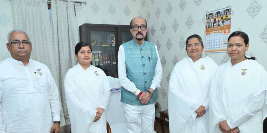 राज्यपाल श्री रमेन डेका से आज यहां राजभवन में प्रजापिता ब्रह्मकुमारी ईश्वरीय विश्वविद्यालय की संचालक ब्रम्हकुमारी सविता दीदी ने सौजन्य भेंट की। उन्होंने श्री डेका को शिवरात्रि पर्व के अवसर में प्रजापति ब्रह्मकुमारी ईश्वरीय विश्वविद्यालय में आयोजित विभिन्न कार्यक्रमों के लिए आमंत्रित किया। इस अवसर पर बी. के रश्मि, बी. के. पूर्णिमा, मनीष दूधवानी उपस्थित थे।
