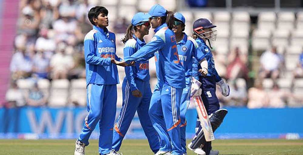 क्रांति गौड़ ने साउथैम्पटन के रोज बाउल में खेले गए पहले एकदिवसीय मैच में शानदार गेंदबाजी की। उन्होंने इंग्लैंड के बल्लेबाजों को परेशान कर दिया। अपने सिर्फ दूसरे ODI मैच में खेलते हुए, 21 वर्षीय क्रांति ने एमी जोन्स और खतरनाक टैमी ब्यूमोंट को आउट किया। इंग्लैंड ने पहले बल्लेबाजी करने का फैसला किया था। क्रांति ने शुरुआती स्पेल में 5 ओवर में 28 रन देकर 2 विकेट लिए। क्रांति गौड़ को 2025 में WPL में यूपी वॉरियर्ज ने 10 लाख में खरीदा था।