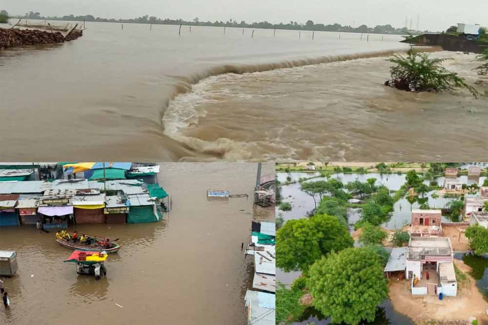 धौलपुर में चंबल नदी खतरे के निशान से तीन मीटर ऊपर बह रही है, वहीं दौसा के लालसोट में एनीकट की पक्की दीवार टूटने से जलप्रलय जैसे हालात हैं। उदयपुर में सेल्फी लेते समय एक युवक उदयसागर झील में गिर गया। मौसम विभाग के अनुसार मानसून ट्रफ फिलहाल जैसलमेर से बंगाल की खाड़ी तक सक्रिय है, जिससे 8 सितंबर तक उदयपुर, जोधपुर, कोटा और आसपास के जिलों में भारी से अति भारी बारिश जारी रहने की संभावना है। प्रशासन ने प्रभावित जिलों में स्कूलों और आंगनबाड़ी केंद्रों में छुट्टियां घोषित कर दी हैं और बचाव दल अलर्ट पर हैं। जनता से अपील की गई है कि वे अनावश्यक रूप से जलमग्न इलाकों में न जाएं।