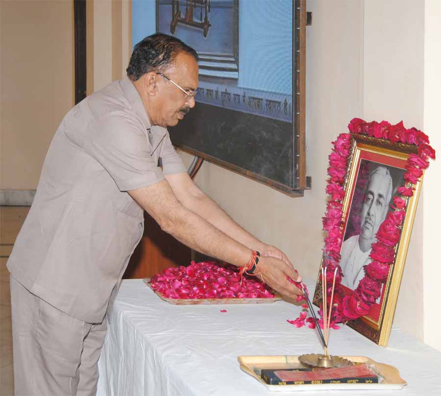 राजस्थान विधान सभा अध्यक्ष श्री वासुदेव देवनानी ने शुक्रवार को यहां पूर्व विधानसभा अध्यक्ष स्व. श्री लक्ष्मण सिंह महारावल के चित्र पर पुष्प अर्पित कर उनकी जयन्ती पर पुष्पाजंलि अर्पित की।