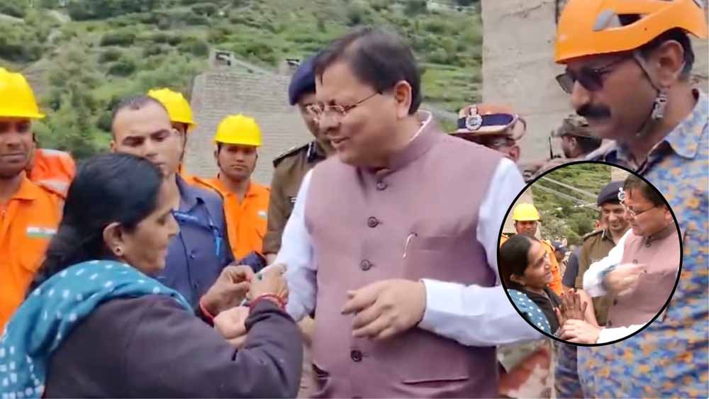उत्तराखंड के धराली में तीन दिन पहले हुई बादल फटने की घटना के बाद शुक्रवार को मुख्यमंत्री पुष्कर सिंह धामी राहत एवं बचाव कार्य का निरीक्षण करने पहुंचे। इसी दौरान उस वक्त एक अत्यंत भावुक कर देने वाला पल देखने को मिला, जब वहां रेस्क्यू कर लाई गई एक महिला ने मुख्यमंत्री को धन्यवाद देते हुए उन्हें अपना दुपट्टा फाड़कर बनी राखी उनकी कलाई पर बांधी। रक्षाबंधन से ठीक एक दिन पहले हुई इस घटना से सीएम भी भावुक हो गए और उन्होंने अपनी प्रतिक्रिया सोशल मीडिया पर व्यक्त की। उन्होंने कहा कि ये कोई सामान्य राखी नहीं थी, ये थी भरोसे की, अपनत्व की, और उस रिश्ते की जो खून से नहीं, दिल से जुड़ता है। जिस महिला ने यह प्रतीकात्मक राखी बांधी वह गुजरात की रहने वाली है।