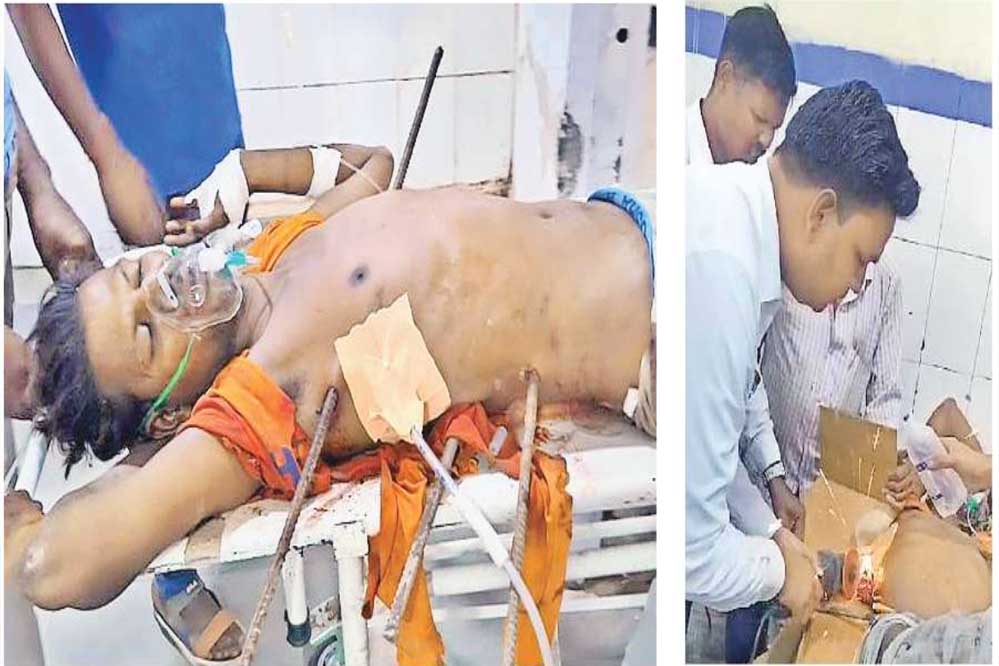 29 अक्टूबर को रेलवे स्टेशन पर निर्माणाधीन इमारत पर काम करते समय छोटू जाटव (35) नीचे गिर गया था। उसके पेट और छाती में तीन सरिये घुस गए थे। गंभीर हालात में उसे जेएएच के ट्रामा सेंटर में इलाज के लिए ले जाया गया था। यहां सीटी स्कैन जांच के लिए पहले ग्राइंडर से उसके सरियों को काटा गया।