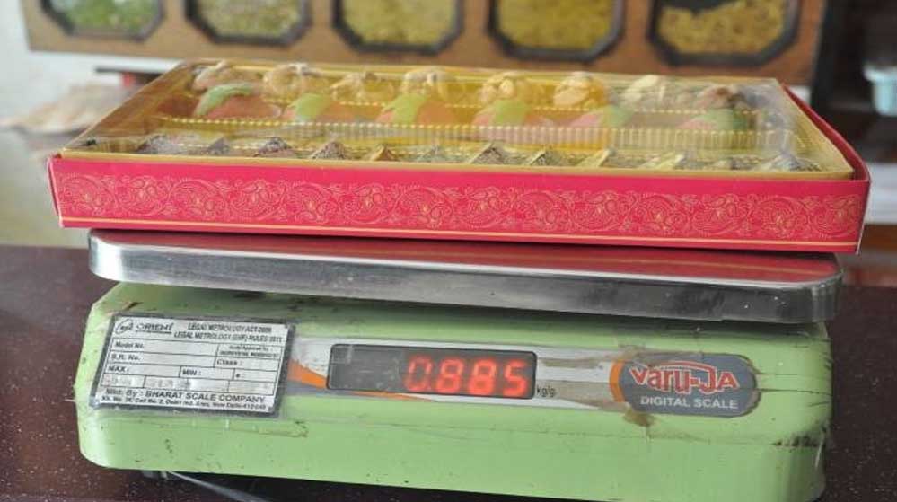 डिब्बे के साथ मिठाई का वजन न करेंगे व्यापारी