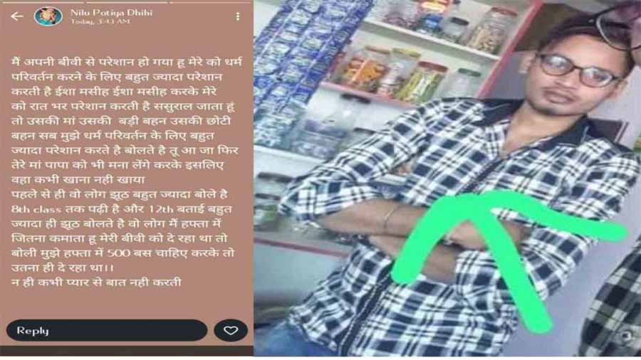 मृतक लिनेश ने ससुराल पक्ष पर हिंदू से ईसाई धर्म में जाने के लिए दबाव डालने का आरोप लगाया है. घटना की सूचना मिलते ही अर्जुनी पुलिस मौके पर पहुंची और मृतक की पत्नी को हिरासत में लेकर पूछताछ कर रही.