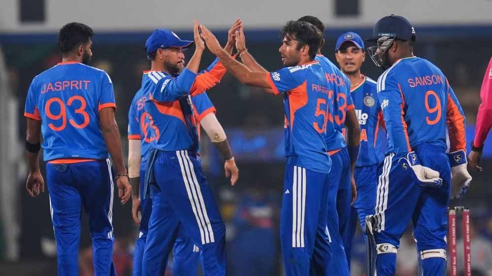 पांचवें टी20 के लिए भारत की संभावित प्लेइंग इलेवन- संजू सैमसन (विकेटकीपर), अभिषेक शर्मा, ईशान किशन, सूर्यकुमार यादव (कप्तान), शिवम दुबे, रिंकू सिंह, अक्षर पटेल, वरुण चक्रवर्ती, कुलदीप यादव, जसप्रीत बुमराह और अर्शदीप सिंह