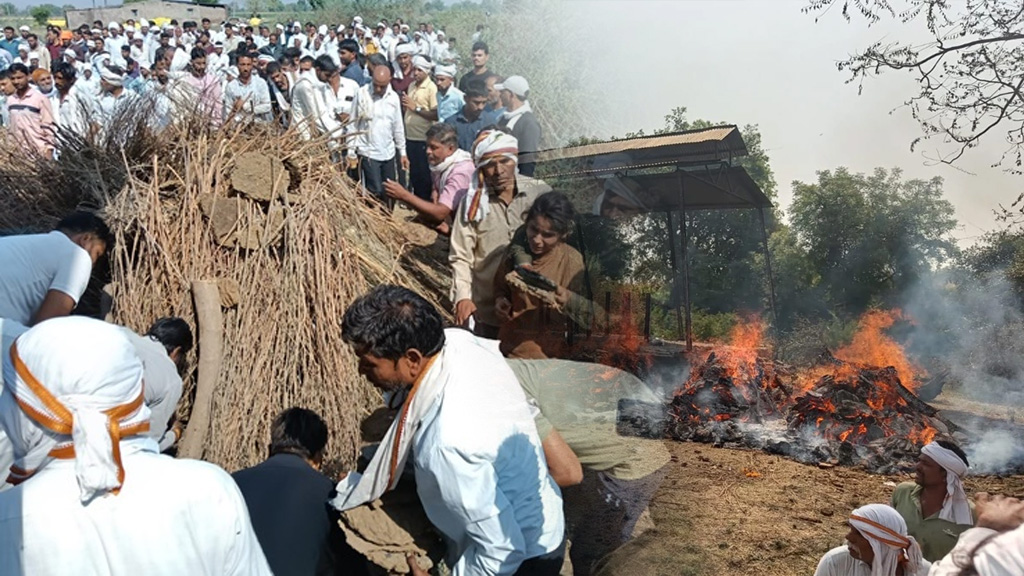 एंबुलेंस का काफिला पहुंचते ही गांव में चीख पुकार और हर आंख नम हो गई। गांव में एक साथ आठ अर्थियां निकली गई। इसमें दो हजार से अधिक लोग शामिल हुए। कुंडावत गांव के श्मशान घाट पर पहली बार एक साथ आठ शवों का अंतिम संस्कार सुबह हुआ।