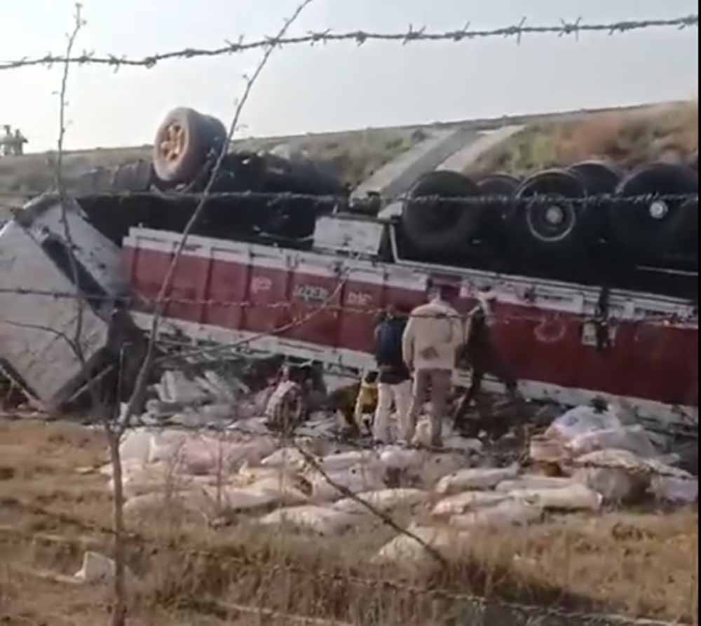 आजमगढ़ जिले के पवई थाना क्षेत्र के मधवापुर गांव के पास पूर्वांचल एक्सप्रेस-वे के 188 पॉइंट पर शनिवार की भोर में एक ट्रक दुर्घटनाग्रस्त हो गया। हरियाणा से बिहार जा रहा ट्रक अनियंत्रित होकर पलट गया और 10 फीट गहरी खाई में जा गिरा। ट्रक में भारी मात्रा में अंग्रेजी शराब की बोतलें भरी हुई थीं, जो संदेह के आधार पर अवैध मानी जा रही हैं। हादसे के बाद मौके पर पहुंची पुलिस ने जांच शुरू कर दी।