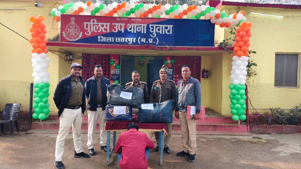 छतरपुर : जिले की चौकी घुवारा एवं थाना ओरछा रोड पुलिस की संयुक्त कार्रवाई में अवैध मादक पदार्थों के संग्रह की सूचना पर एक मकान की विधिवत तलाशी ली गई। तलाशी के दौरान करीब 27 किलोग्राम गांजा, जिसकी अनुमानित कीमत 5 लाख रुपए है, बरामद किया। पुलिस ने आरोपी को गिरफ्तार कर एनडीपीएस एक्ट के अंतर्गत प्रकरण दर्ज कर विवेचना में लिया है।