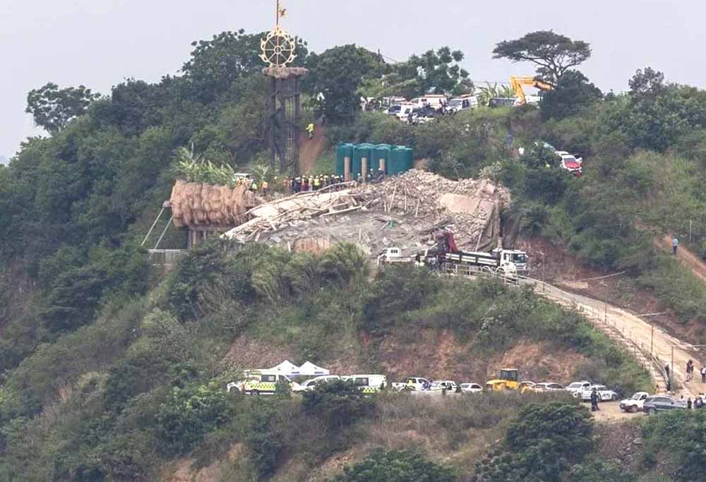 दक्षिण अफ्रीका के एक भारतीय कस्बे में स्थित रेडक्लिफ पहाड़ी पर बने एक चार मंजिला मंदिर के निर्माणाधीन हिस्से के गिरने से कई लोगों की मौत हो गई है। अहोबिलम मंदिर के नाम से स्थानीय लोगों के बीच लोकप्रिय इस मंदिर में शुक्रवार को हुए हादसे के बाद से लगातार बचाव अभियान जारी है। अभी तक चार शवों को बरामद किया गया है। स्थानीय प्रशासन के मुताबिक बचावकर्मियों को एक और शव का पता चला है, लेकिन खराब मौसम की वजह से बचाव कार्य बंद करना पड़ गया। अभी भी कई टन मलबे के नीचे कितने लोग और दबे हुए हैं इसको लेकर अलग-अलग दावे किए जा रहे हैं।
