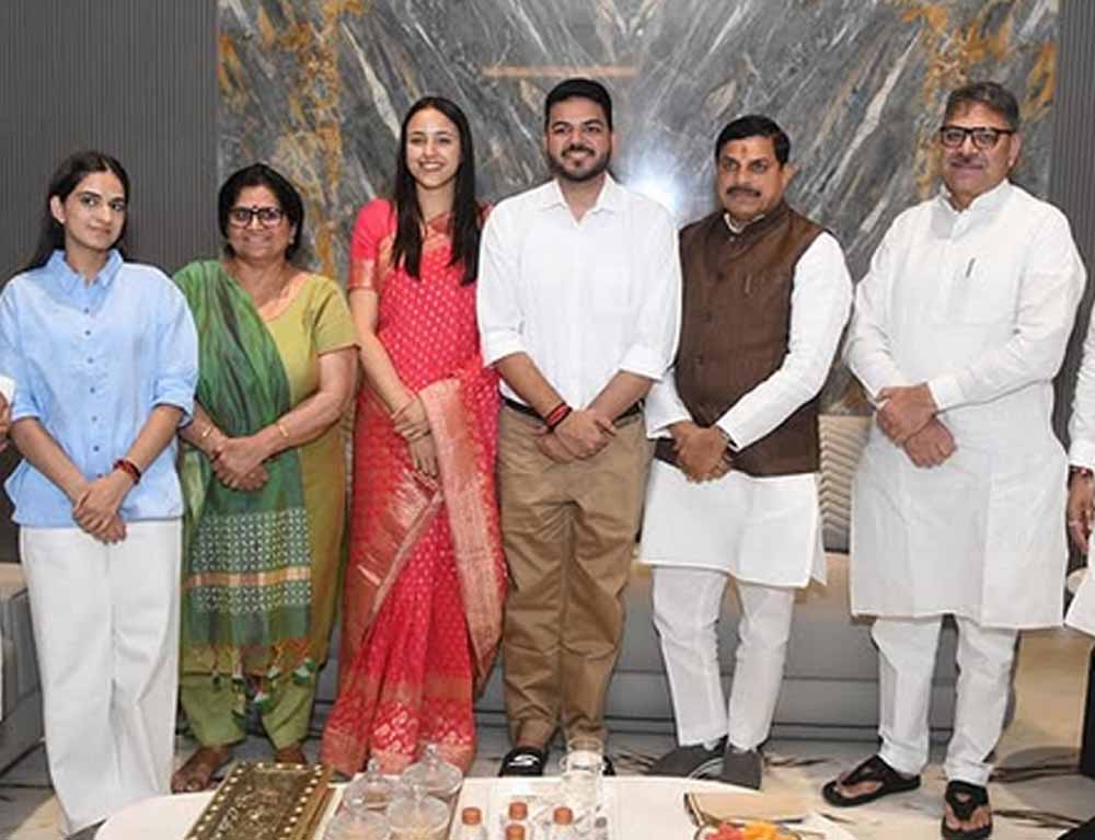 मध्यप्रदेश के मुख्यमंत्री डॉ. मोहन यादव व केंद्रीय कृषि मंत्री एवं पूर्व मुख्यमंत्री शिवराज सिंह चौहान ने भाजपा हरियाणा प्रभारी, भाजपा राजस्थान पूर्व प्रदेशाध्यक्ष डॉ. सतीश पूनिया के जयपुर आवास पहुंचकर उनके पुत्र महीप और पुत्रवधू सिप्पी को सुखमय, खुशहाल, मंगलमय दांपत्य जीवन के लिये आशीर्वाद दिया।