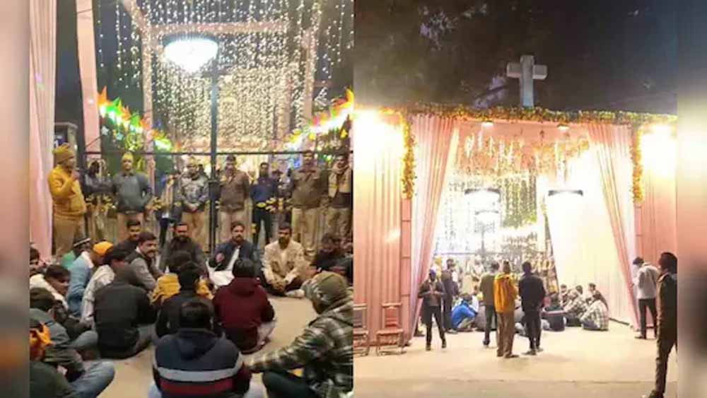 यूपी के बरेली के कैंट थाना क्षेत्र में क्रिसमस से एक दिन पहले बुधवार शाम को बजरंग दल के सदस्यों ने सेंट अल्फोंसस कैथेड्रल चर्च के बाहर विरोध प्रदर्शन करते हुए हनुमान चालीसा का पाठ किया और ‘जय श्रीराम' व ‘हर हर महादेव' के नारे लगाए। प्रदर्शन कर रहे कार्यकर्ताओं ने आरोप लगाया कि चर्च द्वारा आयोजित क्रिसमस महोत्सव के दौरान हिंदू धर्म और समाज को गलत और आपत्तिजनक तरीके से प्रस्तुत किया गया, जिससे हिंदू जनभावनाओं को ठेस पहुंची है।